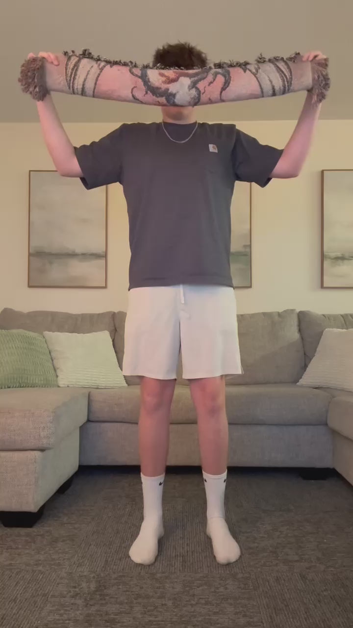 Whether you choose one style or another, these cozy blankets elevate images into lasting, quality heirlooms. Put them up on the wall for a cozy display or use it to cuddle up on your couch. These cozy throw-sized woven blankets are woven out of 100% cotton yarn with a colorful edge fringe that extends the image.